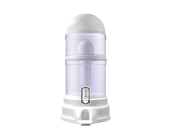 Filtre au charbon actif et en céramique. Capable de filtrer 99% de bactérie dans l'eau.